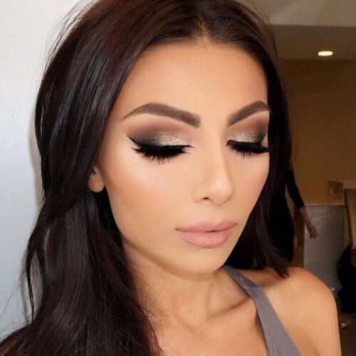 Use a lot of mascara under your lower eyelashes and a light tan shade on top to really make the eyes pop.