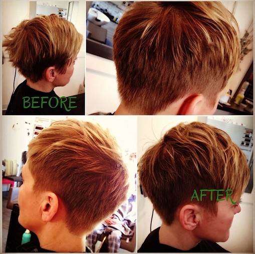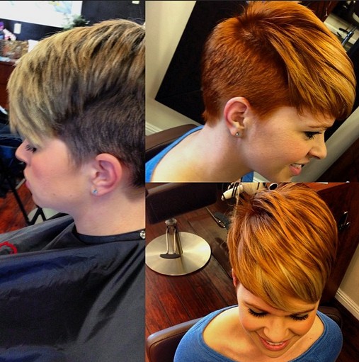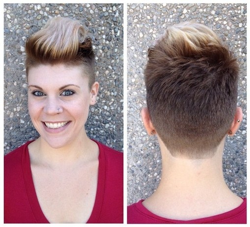 This is an awesome pixie cut with a fauxhawk. This pixie style can be worn to any casual outfit and give it a contemporary look.
