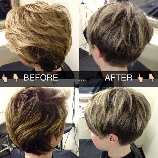 The pixie is a great choice for girls with ombre hair. The color changes with each layer.