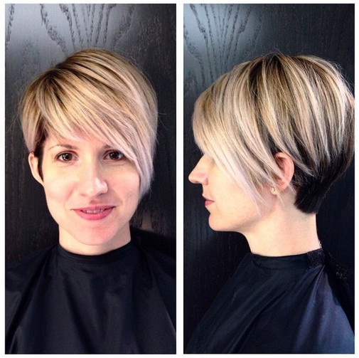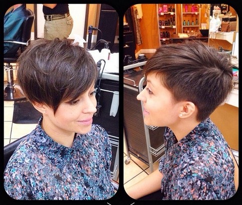 It’s a great way to give pixies a new look. Keep the bottom short to give a dramatic contrast between the sleek and straight tops.