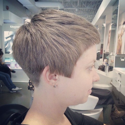 Short pixies look cool with their choppy layering and side-shaved sides. Use hairspray to create an uneven appearance at the ends.